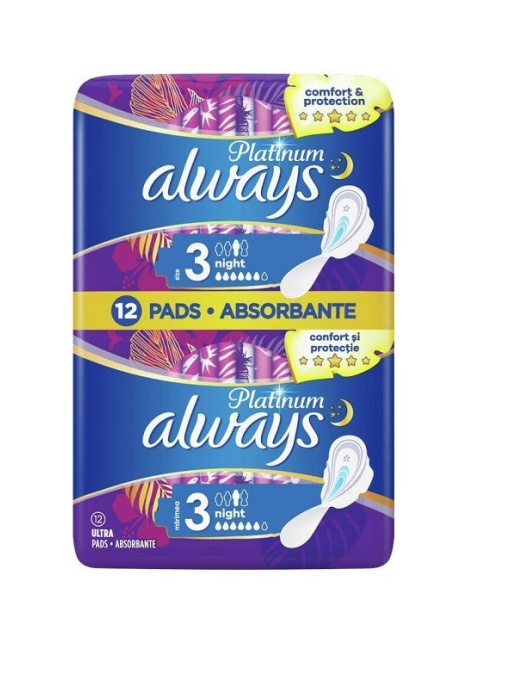 Absorbante Platinum Ultra Night 3 Always, 12 bucati - Descoperă gama de produse 1001cosmetice.ro!