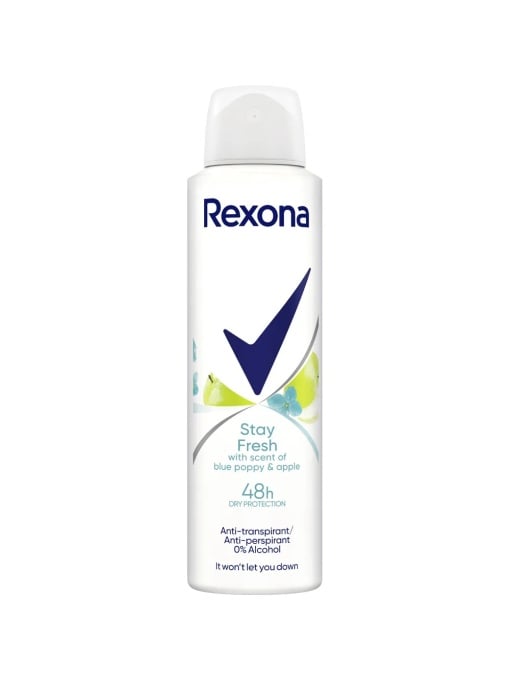 Rexona Stay Fresh Motionsense Blue Poppy & Apple este antiperspirantul care îți menține pielea uscată și parfumată pe tot parcursul zilei, datorită tehnologiei Motionsense™ – microcapsule care eliberează parfum la fiecare mișcare. Combinația de blue poppy și măr verde oferă o aromă fresh, ușor fructată, perfectă pentru zile active.