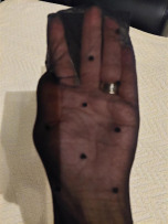 Ciorapi dama cu buline, produsi din fibre de tip Lycra 15 den, ce ofera ciorapului flexibilitate.