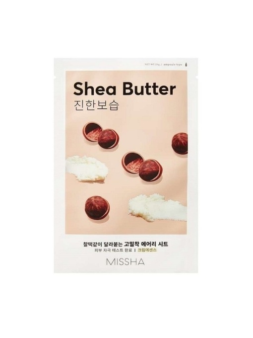 Masca de față Missha Airy Fit Sheet Mask Shea Butter cu extract de unt de shea este concepută pentru a oferi hidratare intensă și confort pielii. Formula sa nutritivă ajută la menținerea hidratării și contribuie la un aspect mai catifelat și mai neted al tenului.