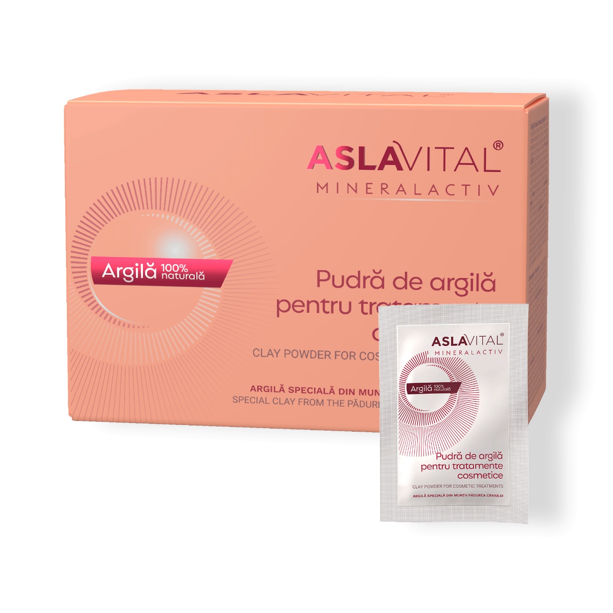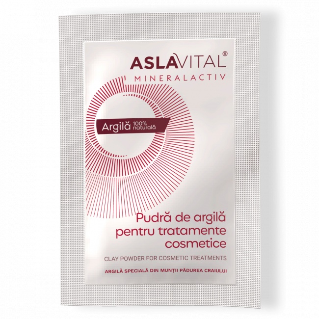 Aslavital Mineralactiv Pudră de Argilă este un produs cosmetic 100% natural, obținut din Munții Pădurea Craiului, este ideal pentru toate tipurile de ten, inclusiv pielea sensibilă, acneică, seboreică sau cuperozică. Datorită compoziției sale bogate în minerale esențiale precum fier, potasiu, magneziu, zinc și calciu, argila specială ajută la detoxifierea, revitalizarea și regenerarea pielii.