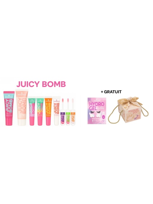 Acest set special Essence reunește toate cele 9 variante de luciu de buze Juicy Bomb, cunoscute pentru aromele lor delicioase și finish-ul strălucitor, și oferă cadou un set Hydro Gel Eye Patches pentru hidratarea și revigorarea zonei delicate de sub ochi.