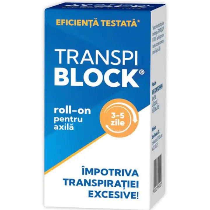 TRANSPIBLOCK ROLL ON PENTRU AXILA IMPOTRIVA TRANSPIRATIEI EXCESIVE, 50 ML