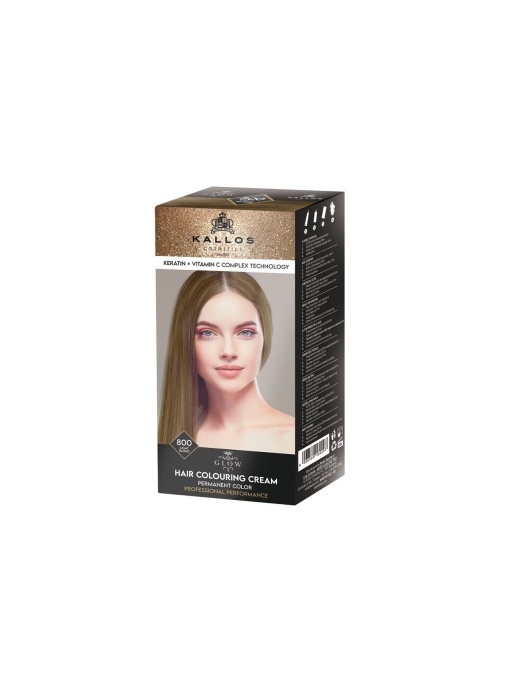 Kallos Glow 800 Light Blond este o vopsea de păr permanentă care oferă o culoare deschisă, luminoasă și uniformă. Formula hrănitoare acoperă firele albe și lasă părul strălucitor, hidratat și ușor de pieptănat. Ideală pentru obținerea unui blond natural și curat.